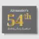 This guest book design features the ordinal number "54th" with a faux/imitation gold-like appearance. It also features a personalised name, and a grey (grey) coloured background. It could be used at a birthday party for somebody who is celebrating their fifty fourth birthday. [~Z0000193]