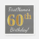 Grey, Faux Gold 60th Birthday + Custom Name Napkin