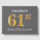 This guest book design features the ordinal number "61st" with a faux/imitation gold-like appearance. It also features a personalised name, and a grey (grey) coloured background. It could be used at a birthday party for somebody who is celebrating their sixty first birthday. [~Z0000193]