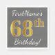 Grey, Faux Gold 68th Birthday + Custom Name Napkin