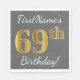 Grey, Faux Gold 69th Birthday + Custom Name Napkin