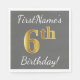 Grey, Faux Gold 6th Birthday + Custom Name Napkin
