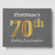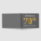 This guest book design features the ordinal number "70th" with a faux/imitation gold-like appearance. It also features a customised name, and a grey (grey) coloured background. It could be used at a birthday party for somebody who is celebrating their seventieth birthday. [~Z0000193]
