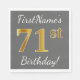 Grey, Faux Gold 71st Birthday + Custom Name Napkin