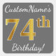 Grey, Faux Gold 74th Birthday + Custom Name Square Sticker