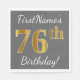 Grey, Faux Gold 76th Birthday + Custom Name Napkin