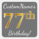 Grey, Faux Gold 77th Birthday + Custom Name Square Sticker