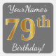 Grey, Faux Gold 79th Birthday + Custom Name Square Sticker