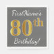 Grey, Faux Gold 80th Birthday + Custom Name Napkin