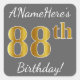 Grey, Faux Gold 88th Birthday + Custom Name Square Sticker