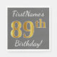 Grey, Faux Gold 89th Birthday + Custom Name Napkin