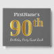 This guest book design features the ordinal number "90th" with a faux/imitation gold-like appearance. It also features a customised name, and a grey (grey) coloured background. It could be used at a birthday party for somebody who is celebrating their ninetieth birthday. [~Z0000193]