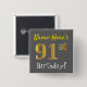 Grey, Faux Gold 91st Birthday, With Custom Name 15 Cm Square Badge