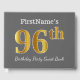 This guest book design features the ordinal number "96th" with a faux/imitation gold-like appearance. It also features a custom name, and a grey (grey) coloured background. It could be used at a birthday party for somebody who is celebrating their ninety sixth birthday. [~Z0000193]