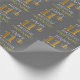 This wrapping paper design features a message like "HAPPY 11th BIRTHDAY", with the "11th" having a faux/imitation gold appearance. It also features a personalised name, and a grey (grey) coloured background. It could perhaps be used when wrapping gifts being given for somebody’s eleventh birthday. [~Z0000187]