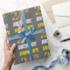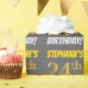 This wrapping paper design features a message like "STEPHANIE’S 24th BIRTHDAY!", with the "24th" having a faux/imitation gold-like colour appearance, and with the name and "BIRTHDAY" in a fun, bold font. The name can be customised, and the background is coloured grey (grey). Wrapping paper like this could perhaps be used when wrapping birthday gifts being given to somebody in celebration of their twenty fourth birthday. [~Z0000211]
