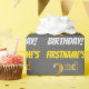 This wrapping paper design features a message like "FIRSTNAME’S 2nd BIRTHDAY!", with the "2nd" having a faux/imitation gold-like colour appearance, and with the name and "BIRTHDAY" in a fun, bold font. The name can be customised, and the background is coloured grey (grey). Wrapping paper like this could perhaps be used when wrapping birthday gifts being given to somebody in celebration of their second birthday. [~Z0000211]