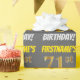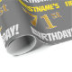 This wrapping paper design features a message like "FIRSTNAME’S 71st BIRTHDAY!", with the "71st" having a faux/imitation gold-like colour appearance, and with the name and "BIRTHDAY" in a fun, bold font. The name can be personalised, and the background is coloured grey (grey). Wrapping paper like this could perhaps be used when wrapping birthday gifts being given to somebody in celebration of their seventy first birthday. [~Z0000211]