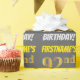 This wrapping paper design features a message like "FIRSTNAME’S 92nd BIRTHDAY!", with the "92nd" having a faux/imitation gold-like colour appearance, and with the name and "BIRTHDAY" in a fun, bold font. The name can be personalised, and the background is coloured grey (grey). Wrapping paper like this could perhaps be used when wrapping birthday gifts being given to somebody in celebration of their ninety second birthday. [~Z0000211]
