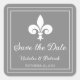 Elegant and simple Wedding Save the Date Stickers featuring a fleur de lis against a Grey background. This design is a unique choice for announcing a modern wedding. Easy to customise with your wedding details. Click "Customise It" to find more personalisation options.