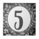 An intricate grey floral design frames a white oval space with a number template. Numbers can be used horizontally or stacked vertically. The edges of the tiles are slightly darkened to lend a dimensional look and add distinction to each tile. Use the edit menu to change numbers.