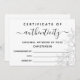 Chic minimalist certificate of authenticity in black and white with hand drawn grey flowers and greenery to which you can add your name or business name. Printed on a 5" x 7" card.