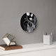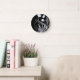 Grey Floral Pattern on Black Round Clock