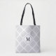 Grey Floral Quatrefoil Pattern With Monogram Tote Bag