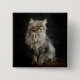 Calmly sitting a full grown fluffy grey cat. Looks like a bit of tabby stripes lightly go through fur.