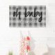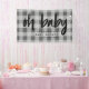 Modern baby shower party decor for your gender neutral baby shower. Grey gingham pattern in the background. The text says "oh baby" in modern script font. You can add the mummy-to-be's name and the event date. Simple and minimalist design.