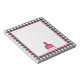 A notepad for teachers featuring a grey gingham background. Personalise with your name under Pink Schoolhouse.