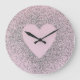 Grey Glitter Canvas Art with Pink Heart Large Clock