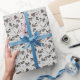 Grey Gothic Skulls and Roses Floral Wrapping Paper