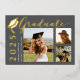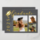 Celebrate your graduate's big accomplishment with this stylish grey grad cap photo foil graduation announcement. Featuring elegant gold foil accents, a bold grad cap design, and space for multiple photos, this card is perfect for showcasing your graduate's achievements. Ideal for high school, college, or university graduations, this modern announcement combines sophistication with a personal touch.