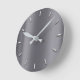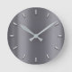 Grey Graphite Metallic Minimal Silver Grey Round Clock