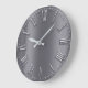 Grey Graphite Metallic Silver Grey Roman Numbers Large Clock