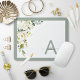 Grey Green Floral Script Monogram Initial Name Mouse Pad
