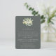 A dark grey green flat wedding enclosure card for wedding travel information or for directions if your reception is at a different venue. Featuring a bouquet/posy of hand painted snowberries and eucalyptus on the front and a wreath on the back of the card. All text is fully editable and the scattered dots on the front and back can be deleted before ordering if you would prefer. This card is available with alternative botanical designs, in a landscape format, and in different colours. Please view the Collection in my store to see all options and coordinating items.