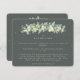 A dark grey green flat wedding reception enclosure card for wedding receptions that are held at a different venue than the wedding ceremony. The card features an elegant garland of hand painted snowberries and eucalyptus on the front and a wreath on the back of the card. All text is fully editable and the scattered dots on the front and back can be deleted before ordering if you would prefer. This card is available with alternative botanical designs, in a portrait format, and in different colours. Please view the Collection in my store to see all options and coordinating items.