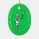 This ornament features the graphic image of an older male tennis player with grey hair. On the back you can personalise this with a name and year. Or, put whatever you want on the back. This makes a great gift for the tennis lover you know for Christmas, birthday, Tennis Day, co-worker, etc. It is a great way to represent the tennis player in the family on the Christmas tree. Designed by Sheila Cicchi, Brownielocks.com. All Rights Reserved. NOTE: Due to the design style, you can only buy this on OVAL ornaments.