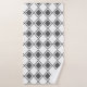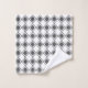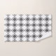 This towel set has a mid-century modern design of solid grey diamonds inside grey diamond outlines on a field of white.