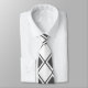 This necktie has a mid-century modern design of solid grey diamonds inside grey diamond outlines on a field of white.