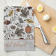 This light grey Thanksgiving Fall Harvest and Horns kitchen towel features a hand-drawn Fall Harvest pattern in black ink against an elegant light grey background, capturing the spirit of autumn.