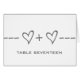 Cute and whimsical Heart Equation Wedding Table Number Card in grey featuring a fun math equation "joining" two hearts/people. This nerdy design is a charming choice for a math loving couple or any couple wanting something simple but with a hint of whimsy. Easy to customise, simply add the appropriate table number(s) in the space provided. Click "Customise It" to find more personalisation options.