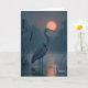 A grey heron stands gracefully in shallow water surrounded by tall reeds as the pink moon casts a warm glow across the scene.