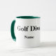 Such a fun mug for the female golfer to get as a gift (or buy it for yourself). The cartoon woman golfer has a fun attitude. On the other side is "Golf Diva" which can be removed or changed if you wish. Below, you can personalise this with a name. I put this on a green mug for golf, but you can buy this in any of the other colours offered as well. You can also buy this design on any of the drinking items offered. Designed by Sheila Cicchi, Brownielocks.com. All Rights Reserved.
