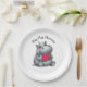 This charming paper plate will have you celebrating in style with this adorable hippo-theme birthday table accessory. The design features a cute whimsical grey hippo sitting up, wearing his little party hat while happily munching on a watermelon slice, bringing a playful and cheerful vibe to the party. The message says 'hip hip hooray' perfect for a celebration.