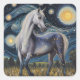 A beautiful grey horse in a starry night in the style of Van Gogh