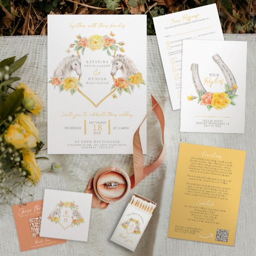 Horses and roses watercolor country wedding Designed by Sarah Trett