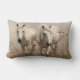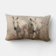 Grey Horses Pink Flowers Oil Painting Lumbar Cushion